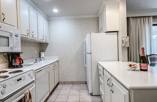 Ubicado en el segundo piso con un relajante balcón, este hermoso condominio tiene vista al campo de golf, con hermosos paisajes de montaña en el fondo. Este condominio está completamente amueblado y ofrece una cómoda sala de estar con TV de pantalla plana de 32 pulgadas, conexión Wi-Fi gratuita y televisión por cable, con chimenea de leña, mesa de comedor para 4 personas, cocina completa equipada con electrodomésticos de gran tamaño y mucho espacio. de utensilios de cocina, platos y utensilios, duerma profundamente en el espacioso dormitorio principal equipado con una lujosa cama king de California y un televisor de pantalla plana de 32 pulgadas. El amplio baño en suite ofrece un armario con espejo y una combinación de bañera / ducha. Estacionamiento gratuito y conveniente a solo unos pasos en la propiedad del resort.