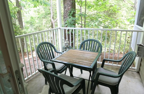 Have a relaxing vacation in our beautiful, quiet, 2 bedroom, 2 bathroom condo with 2 porches that overlook the serene woods surrounding Munchy Branch Creek.