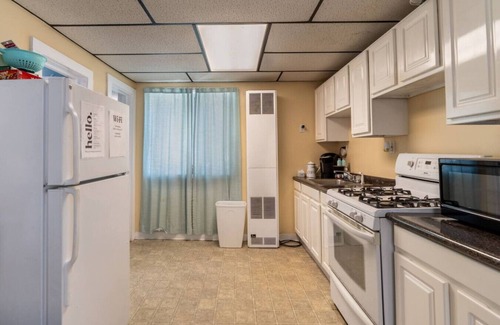 KITCHEN: Cooking basics, dishware/flatware, refrigerator, stove, microwave, Keurig coffee maker, K-cups