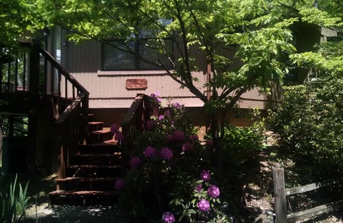 La cabina es un octágono de ocho lados con vistas panorámicas desde la sala de estar y la cocina. La cabina tiene su propio camino privado pavimentado con estacionamiento disponible para dos autos. La cabaña ha sido ajardinada con rododendros de montaña y varios cornejos. Todos los caminos que conducen a la cabina están pavimentados. La subdivisión tiene una piscina enterrada disponible para su uso en temporada. La piscina está a una milla de distancia. Las estrellas son increíblemente brillantes por la noche y no hay luces de la calle que distraigan. Relájate en la bañera de hidromasaje y disfruta del gran espectáculo de estrellas.