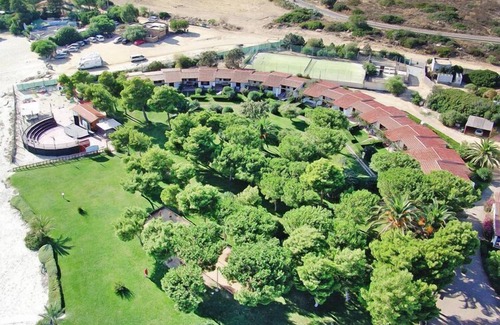 Este complejo vacacional con 120 viviendas y un excelente restaurante está situado directamente sobre el mar cristalino de la playa de arena fina de Campus, cerca de Villasimius, uno de los lugares más bellos de Cerdeña. La variedad de programas deportivos y de entretenimiento no tiene límite: desde apasionantes submarinismo o submarinismo hasta tenis o voley playa, pasando por paseos al atardecer con tu pareja o toda la familia por la incomparable costa de granito rosa de Villasimius. Para los niños hay una zona de juegos con columpios, toboganes y mucho más, así como un mini club y un club joven (a partir de 12 años). Las 2 piscinas, una para adultos y otra para niños, completan la oferta. Desde principios de junio hasta finales de septiembre, se toca música en vivo 6 días a la semana en el piano bar. Cerca de las playas más hermosas del sur de Cerdeña y de pueblos famosos como Villasimius o Torre delle Stelle. Esto es lo que ofrece su complejo vacacional: Recepción, punto de acceso WLAN, sala de conferencias Restaurante, snack bar, boutique, bar, estacionamiento vigilado Por una tarifa: lavadora, secadora Piscina exterior comunitaria de 198 m², ducha exterior, terraza solarium, tumbonas, sombrillas Piscina infantil 112 m2 solárium entretenimiento nocturno varias veces a la semana (en temporada) Voleibol de playa, petanca, tenis, tenis de mesa Alquiler de quads y bicicletas en el sitio Canotaje, paseos en bote, alquiler de botes, deportes acuáticos y una escuela de buceo también están en el lugar. Para niños: hay un parque infantil, juegos infantiles, tobogán, columpios y camas elásticas. El club infantil (de temporada) de 4 a 12 años (finales de mayo a principios de octubre) Por una tarifa: niñera y cuidado de niños Reflejos: Servicios de playa: hay (sombrillas 1 x sombrilla por apartamento) y hamacas para todos incluidos. Dado que solo hay un número limitado de sombrillas y tumbonas, no podemos garantizarlas. Movilidad : No apto para personas con movilidad reducida