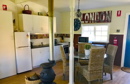 Una cama Queen súper cómoda y digna de la realeza, un encantador Pot Belly para hacer que las noches más frías sean cálidas y cómodas ... Una vista de la hermosa y verde Rrez de Strezlecki, exuberantes pastos verdes.