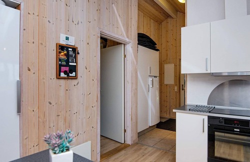 Distribución: cocina abierta(fogón(eléctrico), campana extractora, cafetera, microondas, lavavajillas, nevera, congelador(60-99L), secadora, lavadora), salón-dormitorio(TV(canales de televisión alemanes, canales de TV daneses), reproductor de CD, instalación estéreo, trona), dormitorio(cama doble, cama infantil), dormitorio(cama doble), dormitorio(2x cama individual), cuarto de baño(calefacción de suelo)(bañera o ducha, lavabo, váter), cuarto de baño(calefacción de suelo)(bañera o ducha, lavabo, váter), espacio vacío(2x cama individual plegable), aparcamiento cubierto , videoconsola, Bañera de burbujas(dentro de la casa, climatizada), sauna(dentro de la casa, climatizada), calefacción(radiador(es) eléctrico(s)), terraza, barbacoa, juegos infantíl, mesa de ping-pong, dardos, billar, mesa para limpiar el pescado, bomba de calor aire-aire