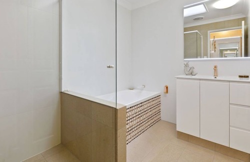 Este espacioso dúplex inspirado en Bali (3 dormitorios más estudio) se encuentra en la tranquila calle junto a la playa de Blackrocks Estate. Duerme 8; cama individual y colchón extraíble en el dormitorio 2, cama queen en el dormitorio 3, cama individual y colchón extraíble en el estudio, cama queen en el dormitorio 1.