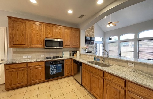 Casa recientemente renovada de 4 habitaciones, 3. 5 baños con plano de planta abierto y techo elevado. Sin alfombra Nueva nevera SS, microondas, lavavajillas, encimera de granito y barra de desayuno. Un minuto a pie del parque infantil. Hermosa casa de 3000 pies cuadrados ubicada en un vecindario tranquilo en McKinney. 2 minutos al norte de la autopista 121 y Stacy, a 10 minutos del centro histórico de McKinney. A 15 minutos del Ford Center y del estadio Toyota en Frisco.