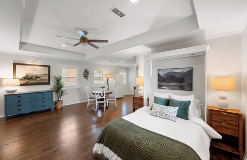 El espacio está bellamente decorado para una estancia relajante y tranquila. Ofrece una entrada completamente separada, espacio de vida completamente privado, piscina y bañera de hidromasaje, y se encuentra en un vecindario tranquilo y exclusivo. La casa de huéspedes incluye una cama plegable grande y un sofá cama extraíble de espuma viscoelástica. Un pack-n-play también está disponible según sea necesario para un niño.