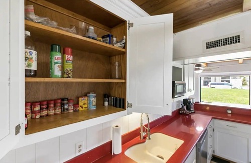 La cocina está completamente equipada con ollas, sartenes y utensilios de cocina, así como la vajilla esperada. Hay una parrilla de gas en el patio trasero para cocinar y disfrutar de una bebida después de que se pone el sol.