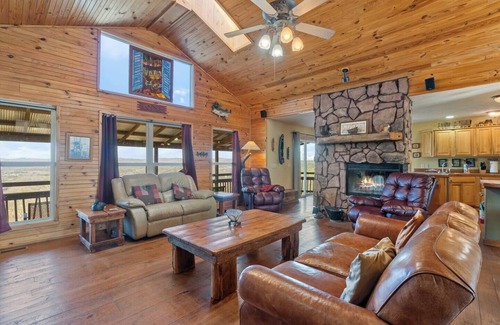 This beautifully designed two-story retreat sleeps up to 10 guests with custom wood furniture, cozy cabin touches, and an open layout perfect for gathering. Main Floor Highlights: