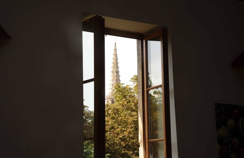 TIEMPO DE VERANO ESPECIAL: EL DESAYUNO SE SERVE FUERA DE LA BARBACOA EN EL JARDÍN. Una hermosa sala de estar en una sección recientemente renovada de un edificio histórico de 1800. 4 dormitorios, 2 en el entresuelo sobre el forro y 2 con vistas al jardín y ascensor. Las 4 habitaciones tienen aire acondicionado, ¡ideal para las noches calurosas de verano! La gran sala de estar (10 x 5 m) contiene secciones para comer. La entrada es desde un carril lateral al lado de la casa con escalones que conducen al apartamento. Amplio, pisos de madera, techos altos. 2 baños con ducha y una cama soffa. Aire acondicionado, TV, internet.
