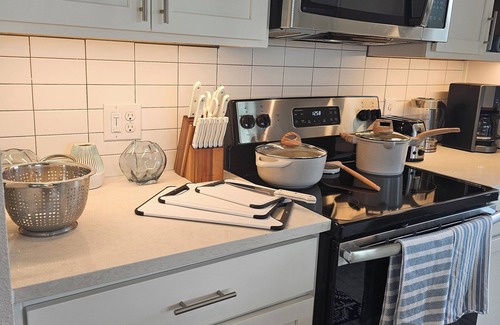 Este alojamiento de 2 dormitorios y 1 baño cuenta con aire acondicionado y escritorio. El cuarto de baño incluye un secador de pelo, toallas y papel higiénico. La cocina está equipada con horno, placa de cocina y frigorífico, además de cafetera y tetera, hervidor eléctrico y máquina de hielo. Y no tendrás que llevarte ropa de más, porque podrás aprovechar la lavadora y la secadora.