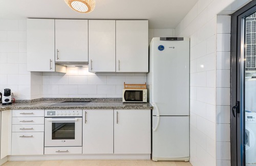 Cocina totalmente equipada abierta a un salón confortable y luminoso.