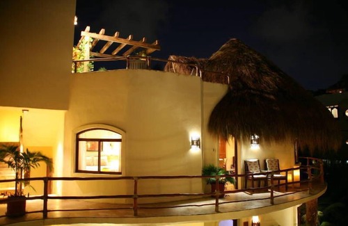 Al entrar, será recibido por una hermosa palapa maya que se eleva sobre la cocina, la sala y el área del loft. El patio por todas partes, con vistas a la piscina y jardines, es perfecto para relajarse o disfrutar de una noche cena privada en la playa del Carmen ..
