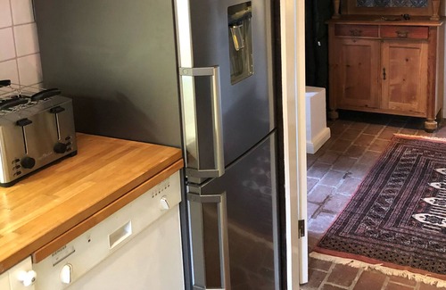 Una encantadora casa con entramado de madera con cañas, construida alrededor de 1850, te espera. Entras en la casa y te paras directamente en el imponente pasillo con una altura de techo de 3.40 my la estufa de leña original, inmediatamente después está la sala de estar y la sala de la chimenea, que está cómodamente integrada y te ofrece horas agradables junto a la chimenea. En la planta baja se encuentran 3 de las 4 habitaciones. En el ático convertido, al que se puede llegar por una escalera, hay una gran sala acogedora con TV y otro horno y otro dormitorio. Todas las estufas y chimeneas son utilizables para usted. Para relajarse, puede entrar en la sauna romántica a través de uno de los dos baños y también tener una ventana para mirar hacia el jardín.