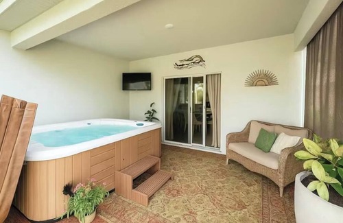 Yes! It’s located in your fenced patio area and fits 6 guests.