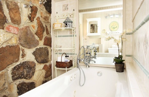 Esta casa de campo romántica se encuentra en los árboles debajo de un acantilado de piedra caliza y se encuentra en el distrito histórico de Eureka Springs con estacionamiento en la calle. La casa está amueblada con antigüedades encantadoras y es muy pintoresca, a un corto paseo panorámico de tiendas y restaurantes locales. Cuenta con una cocina completa con cama queen y sofá desplegable, cable Basic Cox, DVD, chimenea a gas, lavadora, secadora y bañera de hidromasaje. Duerme 4 con el sofá cama.