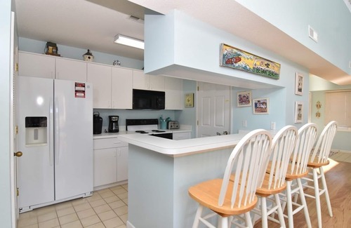 Tres habitaciones (2 habitaciones más loft) tiene una cama king size, una reina y un loft superior con una cama de estilo litera que tiene una litera inferior de tamaño completo y un sofá cama. Duerme cómodamente 8 personas. El gran techo abovedado espacioso en la sala de estar y el comedor tiene puertas corredizas de vidrio a la pantalla envolvente en el porche, así como la cubierta exterior para banquetes de cangrejo. La unidad estilo casa adosada de dos pisos tiene baños separados para ambos dormitorios y el área del desván superior que tiene las literas también tiene un área de juegos para que los niños jueguen videojuegos. Toda la diversión y juegos para los niños en su propio espacio. Una verdadera vacación para adultos y niños.