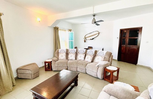 La propiedad es una casa de cuatro dormitorios y un cuarto de estar totalmente amueblado. Cada habitación está equipada con un ventilador de pie y una cama doble. Los inodoros / baños están equipados con calentador de ducha instantáneo. La cocina está equipada con platos, ollas, vasos, tetera, cocina de gas, lavadora y nevera-congelador, etc. La propiedad está equipada con CCTV y WIFI y un garaje para estacionar un automóvil pequeño. Es un alojamiento totalmente amueblado ideal para familias. La propiedad se encuentra a poca distancia de hoteles, playas, hospitales, supermercados y una estación de policía.