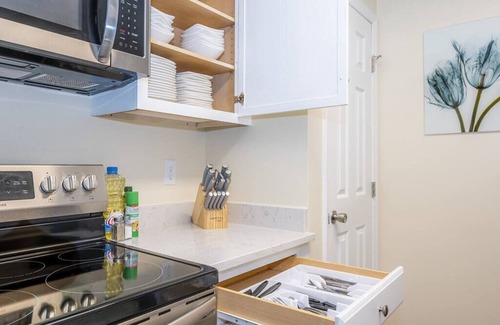Este alojamiento de 4 dormitorios y 3 baños cuenta con una sala de estar, un comedor, un sofá cama y aire acondicionado. Conéctate al wifi, o relájate frente a televisión (dispone de servicios de streaming). El cuarto de baño incluye un secador de pelo, artículos de higiene personal gratuitos y toallas. La cocina está equipada con horno, además de cafetera y tetera, microondas y utensilios de cocina. Y gracias a la lavadora y la secadora, podrás viajar con poco equipaje. Otras comodidades incluyen un escritorio, una tabla de planchar, calefacción y una mesa de comedor.