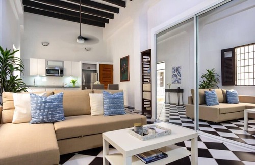 Ubicada en la histórica ciudad colonial española de 500 años de antigüedad del Viejo San Juan, Mezzanine Suite es el campamento base ideal para explorar la historia del Viejo San Juan, restaurantes, tiendas y vida nocturna. Este es un apartamento completamente remodelado de 1 dormitorio, 1 baño. También cuenta con un sof�� cama y entrada directa y acceso al patio de estilo español de los edificios. La casa ha sido completamente remodelada respetando su estilo colonial. Se ha actualizado con aire acondicionado en toda la villa, una cocina actualizada, wifi y TV. La ubicación es ideal para aquellos que buscan estar cerca de la acción en el Viejo San Juan, al lado de restaurantes, una plaza y todo lo que necesita para ver en esta hermosa ciudad histórica. La suite duerme cómodamente 2 adultos en una cama king. Este es un edificio histórico en una ciudad con 400 años de antigüedad y, como resultado, cuenta con pisos originales y angustiados.