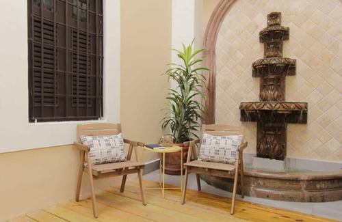 Cuando se hospede en nuestra suite con balcón en el Viejo San Juan, se encontrará cerca de atracciones tales como tiendas, restaurantes y cerca de los fuertes históricos de Puerto Rico. La suite tiene 1 dormitorio, 1 baño, un futón y una cocina recientemente renovada. Esta elegante casa ofrece techos altos y finos acabados en todas las habitaciones, así como un balcón que da a la Plaza. Le encantará la combinación del diseño colonial colonial y arquitectónico español del viejo mundo con las comodidades del nuevo mundo, como el aire acondicionado en toda la villa, una cocina actualizada, wifi, TV y una decoración moderna. La ubicación es ideal para quienes buscan estar cerca de la acción en el Viejo San Juan, junto a restaurantes, vida nocturna y todo lo que necesita para ver en esta hermosa ciudad histórica. La suite duerme cómodamente 2 adultos. Este es un edificio histórico en una ciudad con 400 años de antigüedad y, como resultado, cuenta con pisos originales y angustiados.