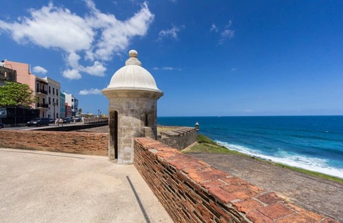 Ubicada en la histórica ciudad colonial española de 500 años de antigüedad del Viejo San Juan, la Suite Azure es el campo base ideal para explorar la historia del Viejo San Juan, restaurantes, tiendas y vida nocturna. La suite tiene 1 dormitorio, 1 baño, sala de estar pequeña pero acogedora, justo al lado de la cocina moderna y sencilla. Le encantará la combinación del diseño estructural colonial del viejo mundo y las comodidades del nuevo mundo, tales como aire acondicionado en toda la villa, wifi, TV y una decoración moderna pero sencilla. La ubicación es ideal para aquellos que buscan estar cerca de la acción en el Viejo San Juan, al lado de restaurantes, una plaza y todo lo que necesita para ver en esta hermosa ciudad histórica. La suite puede alojar cómodamente a 2 adultos en la cama tamaño queen del dormitorio. Este es un edificio histórico en una ciudad con 400 años de antigüedad y, como resultado, cuenta con pisos originales y angustiados.