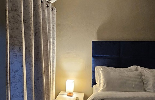 Shiloh Inn-Tranquil midnight blue accent walls set relaxation tone for your stay | Cama Y Desayuno en Gaborone