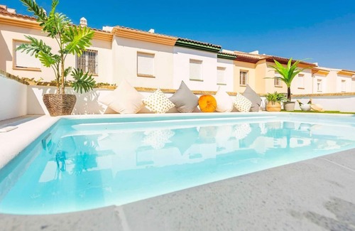 Bonito chalet adosado de dos plantas con un amplio salón comedor, una cocina completamente equipada y un aseo en la planta baja.