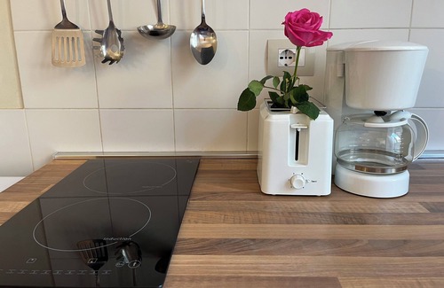 Este soleado apartamento está completamente amueblado en un estilo moderno y listo para recibir a 2-4 personas. Incluye un dormitorio con una cama doble de calidad para un hotel, baño con ducha y una zona de cocina / sala de estar con sofá cama.