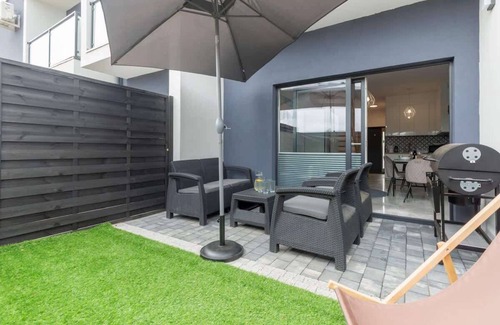 Además de lavandería, esta casa de vacaciones para no fumadores cuenta con un jardín y un área para parrillas.