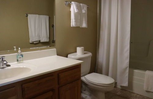 Room #2 - King bed + Bathroom with shower/tub combo