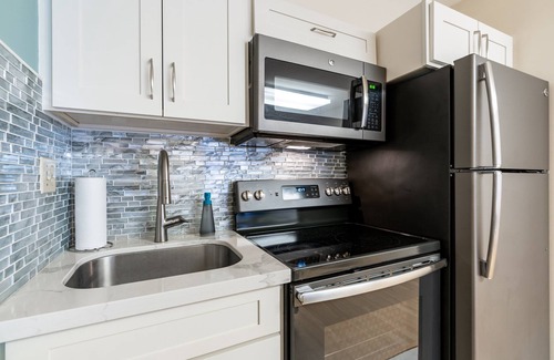 La cocina está equipada con horno, placa de cocina y frigorífico, además de cafetera y tetera, microondas y utensilios de cocina. El cuarto de baño incluye un secador de pelo y toallas. No necesitarás llevarte mucho equipaje, porque hay acceso a una lavandería. Otras comodidades incluyen ropa de cama, una tabla de planchar, aire acondicionado y una mesa de comedor.