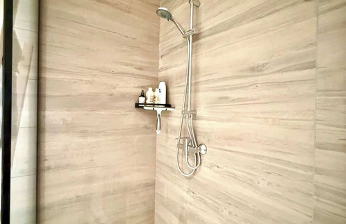 A spacious walk-in shower for maximum comfort.