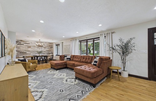 Este alojamiento de 6 dormitorios y 3.5 baños cuenta con una zona para barbacoas, chimenea y aire acondicionado. Conéctate al wifi, o relájate frente a un Smart TV. El cuarto de baño incluye toallas, papel higiénico y jabón. La cocina está equipada con horno, placa de cocina y frigorífico, además de cafetera y tetera, máquina de hielo y microondas. Y no tendrás que llevarte ropa de más, porque podrás aprovechar la lavadora y la secadora. Otras comodidades incluyen ropa de cama y calefacción.