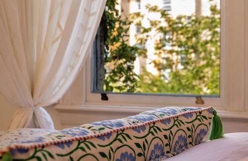 The studio is set on the first floor of a beautiful Georgian townhouse, with tall sash windows that flood the space with natural light and frame the quiet street below. Housed in classic Bath stone, the apartment pairs graceful period features with a calm, contemporary feel.