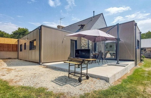 Your holiday home near Rohan is surrounded by a large garden, offering you plenty of space for relaxation and activities. Enjoy the tranquillity of the rural surroundings and use the terrace to spend sunny days outdoors. Make yourself comfortable under the large parasol and use the barbecue for sociable barbecue evenings with family or friends.