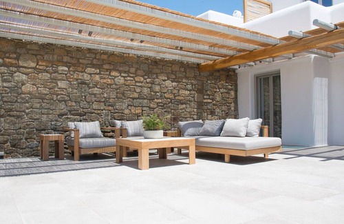 Located in a complex of four exclusive villas, Villa Ravenclaw embodies the essence of Mykonos' minimalistic architecture, combining natural elements like stone and wood to create an atmosphere of cool sophistication. Just minutes away from the vibrant Mykonos Town, guests can enjoy the tranquility of Agia Sofia while being in close proximity to some of Europe’s finest restaurants, shopping, and nightlife.