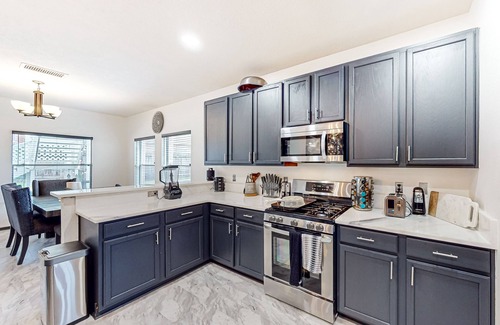 Este alojamiento de 6 dormitorios y 3.5 baños cuenta con un sofá cama, chimenea y aire acondicionado. La cocina está equipada con horno, placa de cocina y frigorífico, además de cafetera y tetera, máquina de hielo y microondas. Y gracias a la lavadora y la secadora, podrás viajar con poco equipaje.