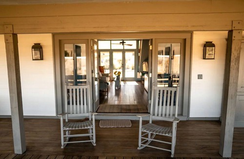 Nuestra Ranch House es una Dogtrot House original de finales de 1800 que ha sido restaurada y reubicada desde New Ulm, Texas, a nuestro paisaje panorámico. Un gran porche delantero le permite disfrutar de las puestas de sol y el amplio porche trasero domina el lago StarHill Farms de 15 acres y el valle de Mill Creek debajo.