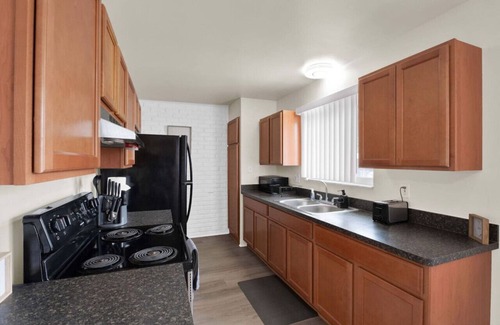 Este alojamiento de 3 dormitorios y 1.5 baños cuenta con aire acondicionado y escritorio. Disfruta del wifi y de la televisión. La cocina está equipada con horno y placa de cocina, además de microondas, utensilios de cocina y tostadora. Y como podrás aprovechar la lavadora y la secadora, no te hará falta llevar mucho equipaje. Otras comodidades incluyen ropa de cama, una tabla de planchar y calefacción.