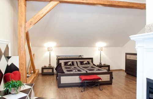 ABOUT THE HOUSE This beautifully located polish style building is spacious and airy with large rooms, 3 kitchens and 4 bathrooms for 12 persons. The location is primo! Near is Poguljanka Park which is a large park covering 4 city blocks, has ponds, and is covered with green grass and trees. The house is in a quiet residential street, but still close enough to the main road for quick trips to the shops 2 mins away that sell virtually everything and only a few minutes to downtown via public transportation! There is a bus line that stops across the street and tram stop also. Parking is available on the private secure parking near the house. Territory near the building is barriered by a high fence, electric gate equipped by an entrance door video-intercom. Nice garden with landscape design. The house is harmonious and balanced space where a fusion of East meets West philosophy can be seen and felt all around the beautiful, relaxing, sensual, soothing and peaceful interiors. A space that is elegant, sophisticated, chic, understated, comfortable & cosy, peaceful & very quiet, with a timeless atmosphere, with personality & soul, with love and pure good energy. 1 FLOOR: On a ground floor which is a three-room apartment with a modern kitchen and two bathrooms. Apartment (132 sq.m.) can accommodate 6 persons. Bedroom newly decorated in crayon tones, there is double king size bed with an orthopedic mattress, dress closet, designer lamps and reconstructed old tiled stove. There is a separate bathroom with Italian shower and large mirror. Another room is executed in East style(original furniture and accessories are brought from Japan), with double folding sofa, table for a tea ceremony and also TV set (satelit TV), large. The third room on a ground floor is a living room orangery style with additional single beds and lots of flowers in the pots and lots of natural light. Specially for guests second separate bathroom (17 sq.m.) is equipped by a bath, table for decorations and cosmetic, bench for rest). The kitchen is stocked with all the appliances you'll need for storing food and cooking in the home. Big family kitchen-dining room room is equipped by all necessary technique and kitchen utensil (Fridge, stove, oven, microwave,filtered water dispenser (Zepter), electro-tea-pot, complete set of dishes). From the kitchen there is an entrance to the balcony (with chairs and table) where you can smoke or have a cup of coffee. 2 FLOOR: On the second floor there are 2 modern en-suite apartments - first for 2 guests and the second for 4 guests. First one (58 sq.m.) for 2 persons furnished in chess studio style. It consists of : bedroom, mini-kitchen, bathroom. Large comfortable double bed is in a bedroom, TV-set, wardrobe, a fire-place next to the soft corner is created for relax. Bathroom with a shower is continuation of the apartment style. Modern mini-kitchen with refrigerator, microwave, stove, electro-tea-pot, dishes. You can prepare supper and invite friends: there is a dining table for 4 persons in the kitchen area. The second apartment is for 4 persons furnished in modern style. It consists of : bedroom, living-room, kitchen, bathroom. Large comfortable double bed is in a bedroom. Living room has double sofa bed. Bathroom with bath. Modern kitchen if fully eqiped. This loft suite is only a few years old and in perfect condition, as is the rest of the house. *** For Your comfort, safety and pleasure there are: armored doors, heating, WiFi, expensive system of drinking-water ionizing, iron, hair dryer etc. ALWAYS complete set of clean bed linen and towels ! *** We are able to rent out this building as a private house and also as a ensuite 1-room apartment, ensuite 2-room apartment and ensuite 3-room apartment! The lower level is a completely separate 3 bedroom apartment with kitchen and two bathrooms ! The upper flour has 2 separate ensuite apartments ! Please inquire about availability and price for your unique needs.