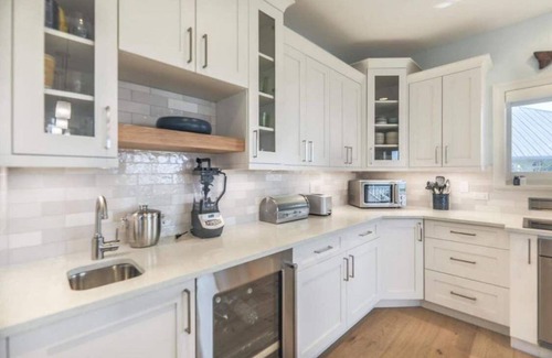 Inspired by Key-West style living, this home is situated across three levels- With the primary living space located on the 1st and 2nd floor and the ground level featuring a garage space with recreation room. The kitchen, living area, and the two guest bedrooms are located on the 1st floor. The primary bedroom, a second more intimate living room, and the loft den are located on the 2nd floor. The bedrooms are configured as follows-