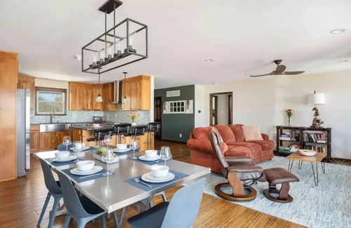 Este alojamiento de 5 dormitorios y 3 baños cuenta con una sala de estar, barbacoas de gas, chimenea y aire acondicionado. El cuarto de baño incluye un secador de pelo, toallas y papel higiénico. La cocina está equipada con horno, placa de cocina y frigorífico, además de cafetera y tetera, máquina de hielo y microondas. Y como podrás aprovechar la lavadora y la secadora, no te hará falta llevar mucho equipaje.