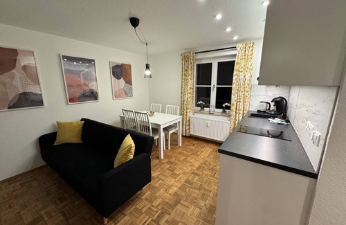 Stylisches Elbjuwel-apartment mit Vollausstattung, Bad, Küche, TV, Kingsize-bett Se encuentra en Kaditz. Stylisches Elbjuwel-apartment mit Vollausstattung, Bad, Küche, TV, Kingsize-bett ofrece alojamiento, con Estacionamiento, TV, Balcón/Terraza, Entre otras comodidades. Estas características Apartamento Estacionamiento, TV, Balcón/Terraza, Para que su estadía sea cómoda.