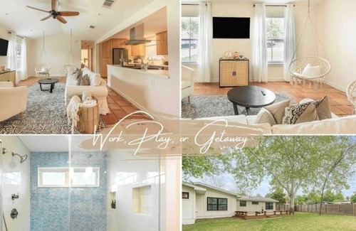 Esta casa de vacaciones de 3 dormitorios y 2 baños está ubicado en Austin, una ubicación ideal para explorar los alrededores. A los amantes de la naturaleza y el aire libre les encantará estar a 20min en coche de Lake Travis y a 11min de Lago Austin. Estarás a 5min en coche de The Domain y a 5min también en coche de Q2 Stadium.