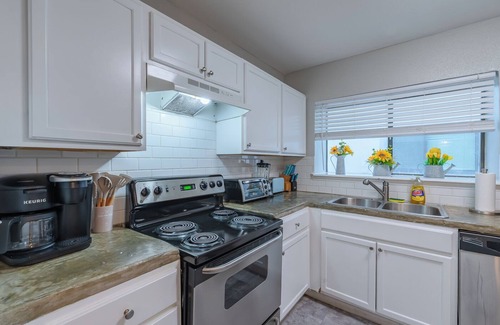 Esta es una casa de 4 dormitorios, 2 baños, 1800sqf. Las 4 habitaciones incluyen camas para 12 personas más un colchón de aire queen que es muy cómodo. Esta casa puede dormir un total de 14 personas. Incluye todo lo que necesitas. Está totalmente amueblado y equipado. Home incluye televisores inteligentes que se pueden usar con Netflix y todos los canales de cable (además de más televisores en la sala de juegos y la suite), Wi-Fi, lavadora y secadora y más. Esta casa también es adecuada para bebés e incluye una silla alta y una cuna pack 'n Play / travel. Los techos altos y los tragaluces hacen de este un espacio luminoso y acogedor. Esta casa tiene una sala de juegos con piscina de futbolín y una sala de juegos. También incluye un gran espacio exterior perfecto para sentarse y hacer barbacoas, debajo de un patio cubierto. ¡Lo amarás!