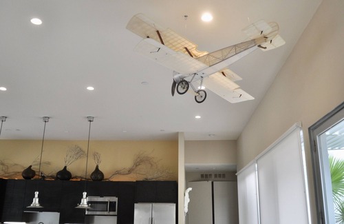 Hay numerosas obras de arte en toda la casa que le dan una sensación colorida de galería de arte.