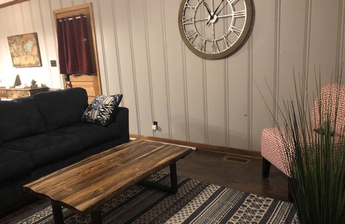 Cabaña completamente amueblada con encanto: 2 habitaciones con TV / 2 baños y sala de bonificación configurada como sala de ejercicios, todos los muebles son completamente nuevos, ¡sé el primero en usarlo! 2 mesas de comedor, cómoda sala de estar con televisor montado en la pared, cocina completamente equipada, área de trabajo con acceso a internet. ¿Olvidas tus llaves a menudo? No necesita preocuparse, tenemos cerraduras inteligentes para su conveniencia. Estacionamiento fuera de la calle, gran terraza en la parte trasera con un amplio patio trasero acogedor y lavandería en el lugar. ¡Disfruta de tu hogar lejos de casa!