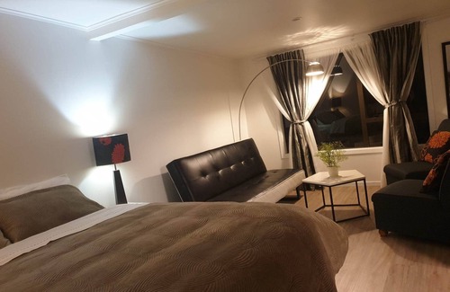 Al instalarte en este alojamiento de 1 dormitorio y 1 baño, encontrarás una sala de estar y un sofá cama. Conéctate al wifi gratis, o relájate frente a un Smart TV. El cuarto de baño incluye un secador de pelo, toallas y jabón. Para tu comodidad, encontrarás frigorífico y hervidor eléctrico. Y hay acceso a una lavandería, de modo que necesitarás poco equipaje. Otras comodidades incluyen ropa de cama, una tabla de planchar, calefacción y una mesa de comedor.