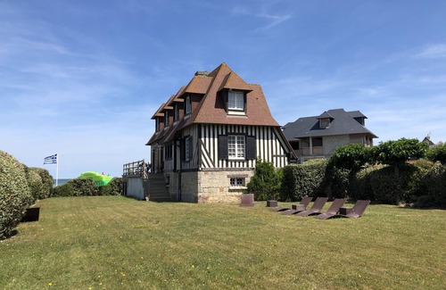 Casa normanda (250m²) en la playa de Bénerville con VISTA AL MAR de todas las habitaciones. Jardín de 1500m². A solo 5 minutos de Deauville (en coche). Wifi equipado.
