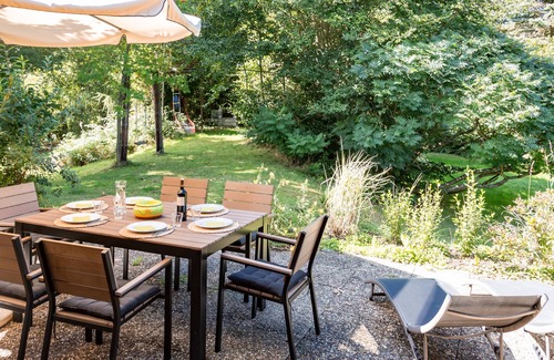 Einliegewohnung en una casa unifamiliar en lugar idílico pueblo, jardín de invierno, un gran jardín con piscina y sauna